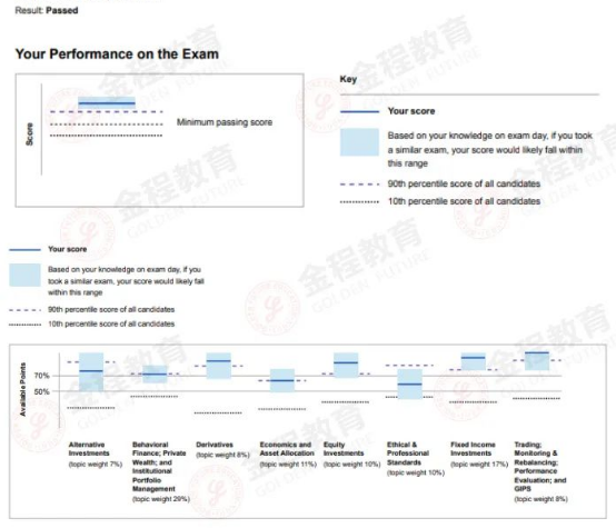 可以看出這位學(xué)員不僅總分遠超全球top 10%,而且CFA三級寫作題和選擇題兩部分也都全部進入全球top10%,尤其是三級考試難點寫作題成為了它斬獲高分的關(guān)鍵。