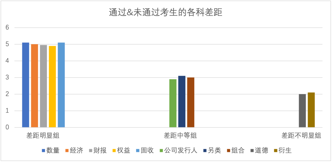 即導致學員未通過考試或者說是拉開差距的主要學科組,包括數(shù)量,經(jīng)濟,財報,權(quán)益,固收這五門學科。