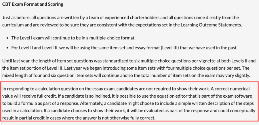 協(xié)會的官方描述是這樣的,對于計算題,只要你答案對,你可以獲得全部分數。協(xié)會沒有強制要求你需要展示你的計算過程。當然如果考生愿意的話,是可以用公式編輯器在軟件中寫公式作答的。假如考生最后的答案是不正確的,考生寫的一些介紹和計算步驟也會被認為是答案的一部分,理論上可能會有部分分數。