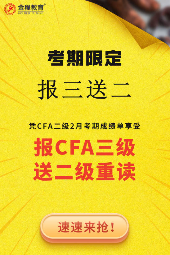 金程這次推出的【二三級連報優(yōu)惠】/【報三送二】活動,其實就是讓各位伙伴能夠安心且快速進入2022年的CFA課程學習中,減少猶豫消耗的時間,盡快***CFA!有意向了解的同學,可以來免費咨詢金程網(wǎng)校。另外如果有報名考位預約相關(guān)的問題也歡迎大家來免費咨詢。