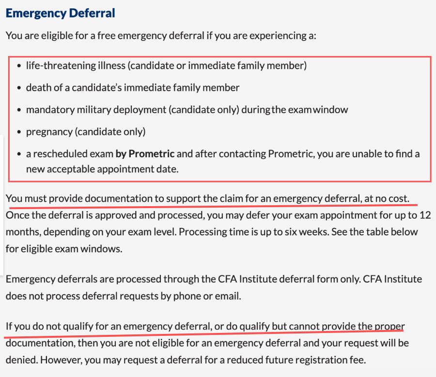 只有滿足以下幾個條件的考生可以申請CFA緊急延期: