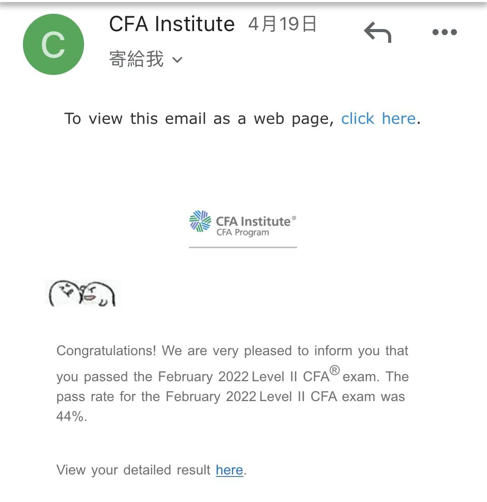 CFA協(xié)會(huì)郵件通知二級(jí)通過