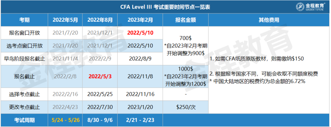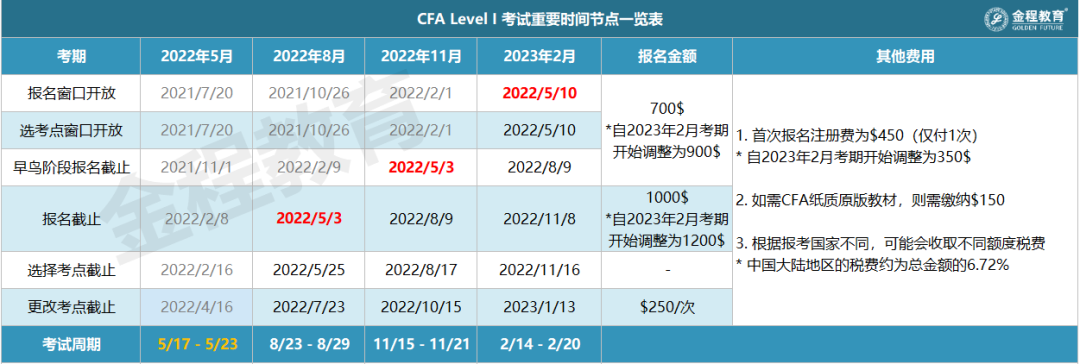 5月10日開(kāi)啟CFA考試報(bào)名通道,就可以開(kāi)始進(jìn)行報(bào)名了,關(guān)于CFA考試報(bào)名流程,歡迎大家看這篇科普文章:CFA報(bào)名攻略| 2022年CFA官網(wǎng)報(bào)名流程詳解,還有免費(fèi)代報(bào)名服務(wù)