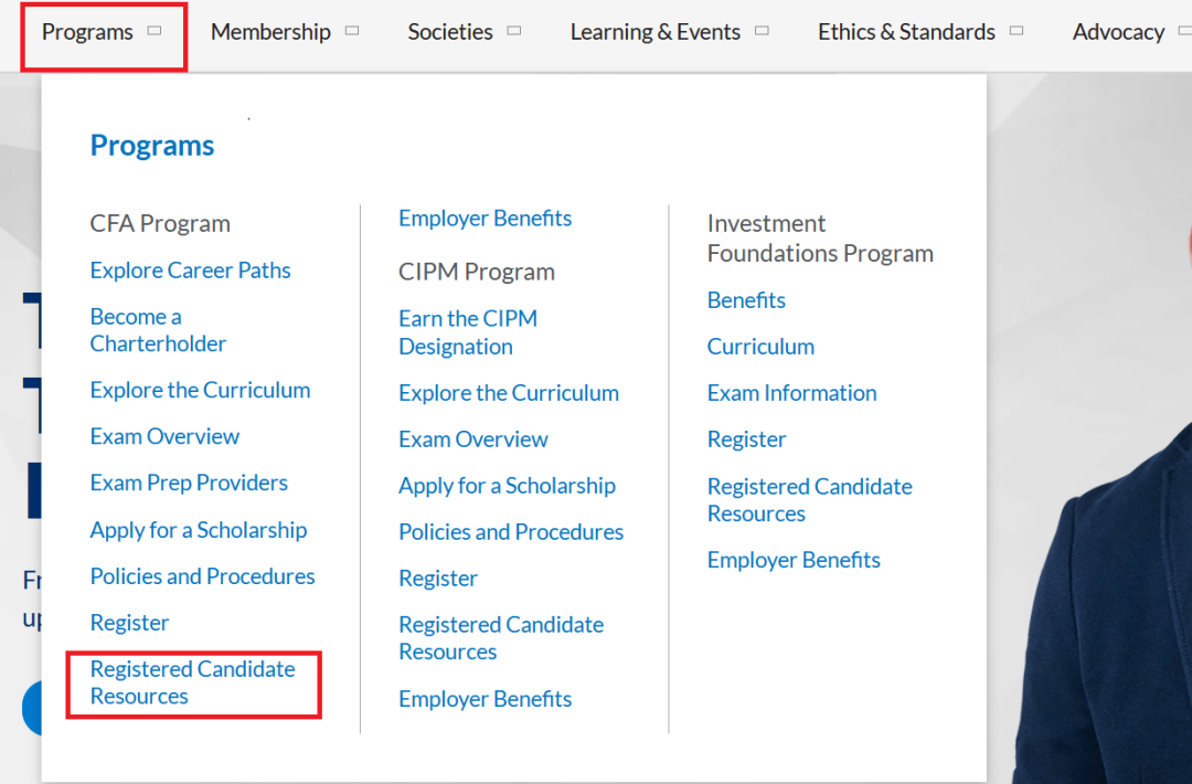 首先大家要登錄自己的CFA賬號(hào),然后選擇點(diǎn)擊Programs – registered candidate resources(圖1),這樣就會(huì)進(jìn)入到協(xié)會(huì)的資料后臺(tái)(圖2),資料后臺(tái)的內(nèi)容不可謂不豐富,從教材到練習(xí)題再到考生必備的mock,這里應(yīng)有盡有,最關(guān)鍵的是,全部免費(fèi)提供給考生!