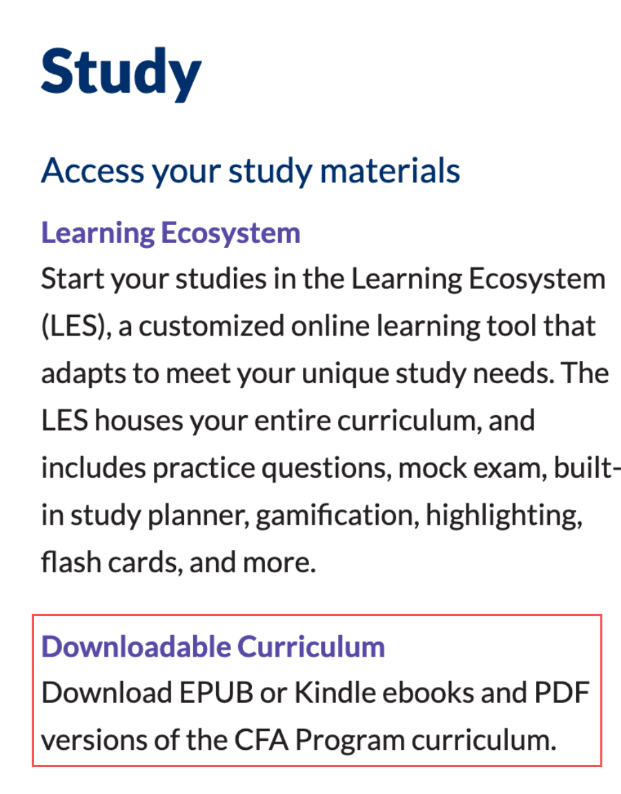 很多小伙伴陸續(xù)開始備考,那第一步自然是收羅各類資料,官方的非官方的,就有小伙伴一臉懵逼,不知道CFA電子教材有哪些?可以免費(fèi)下載嗎?而且CFA協(xié)會(huì)系統(tǒng)最近更新頻繁,practice exam,mock都不知道要去哪里下載,今天,金程老師就帶大家來官網(wǎng)看看,到底CFA協(xié)會(huì)官網(wǎng)提供了哪些資料,又應(yīng)該在哪里下載。