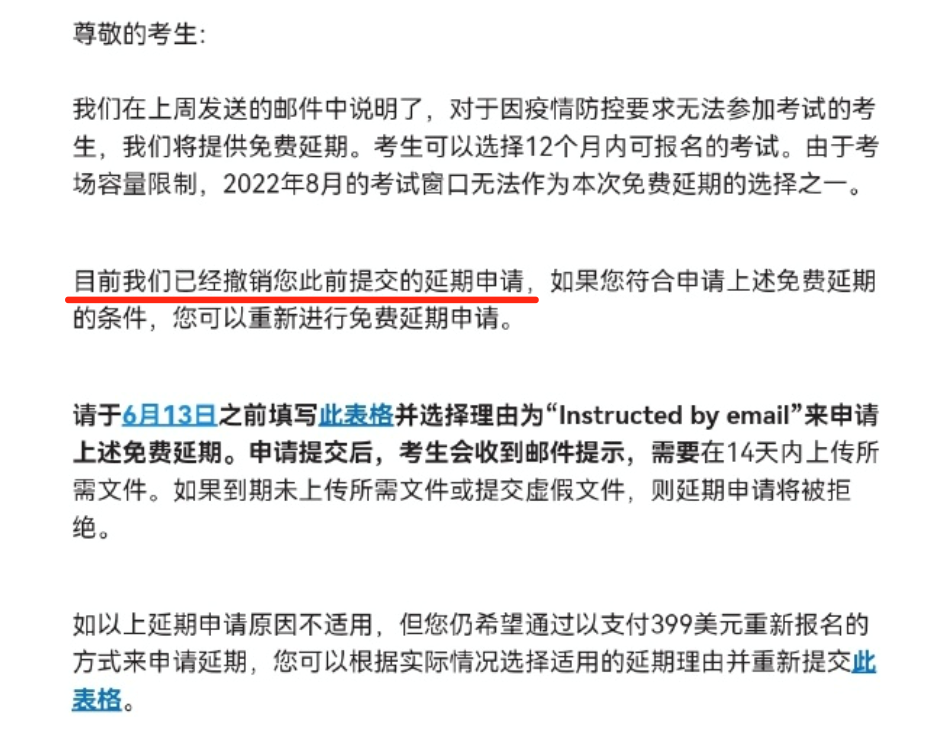 付費(fèi)延期會在考前14天開放申請,到6月13號才會關(guān)閉。