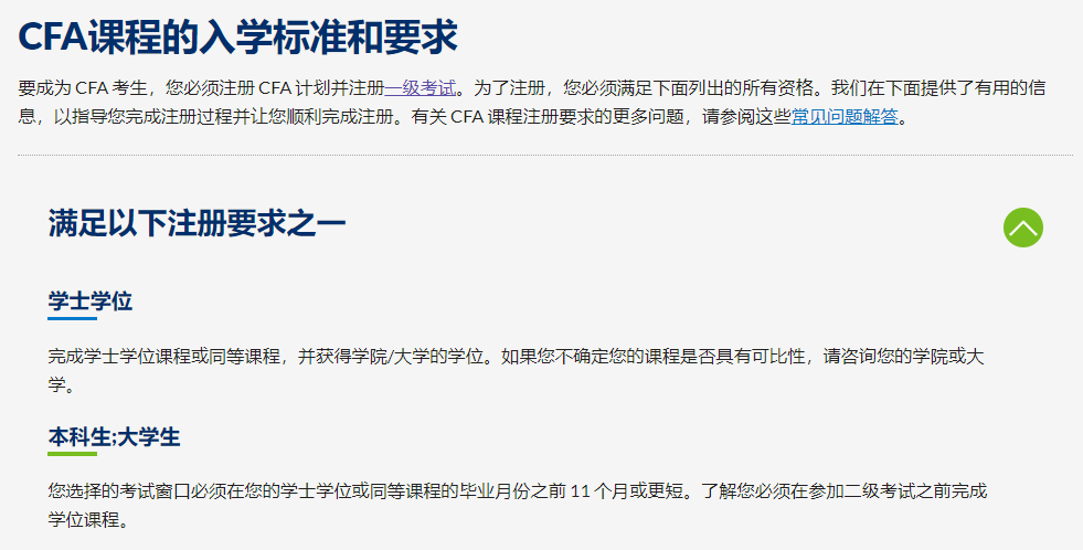 1)報(bào)名CFA一級(jí)考試時(shí)選擇的考試窗口須處于學(xué)士學(xué)位課程或同等畢業(yè)月份前11個(gè)月(含)以內(nèi);