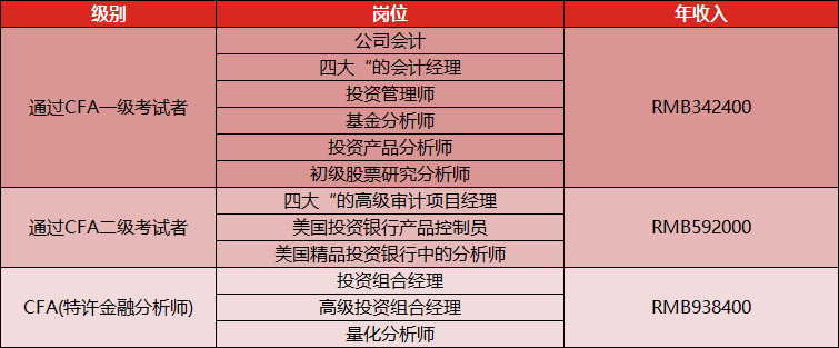 不僅CFA一二三級考什么內(nèi)容有差別,CFA一二三級別考試的薪資待遇也是有差別的,尤其是大學(xué)生群體,因為畢業(yè)后剛剛步入社會,大家?guī)缀醵紱]有太多的工作經(jīng)驗,處于同一水平,而如果你考過了CFA一級,那么完全可以在簡歷上寫上已過CFA一級.