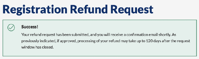 全額退款的前提條件是:僅支持第一次報名考試。“submitting an initial registration"。