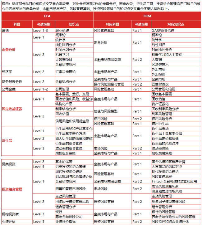 資本市場(債券,衍生品),數(shù)量分析(定量分析),以及資產(chǎn)組合管理,對于這些相同的知識點,F(xiàn)RM的深度和廣度介于CFA1級與2級之間。