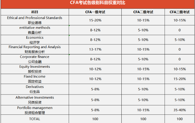 2022年特許金融分析師CFA一二三級(jí)考試內(nèi)容權(quán)重