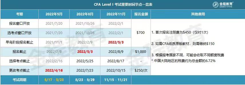 2022年已過(guò)一半,CFA證書(shū)考試還有兩次考試時(shí)間段,具體的時(shí)間安排是怎么樣的呢?小編把2022年CFA考試時(shí)間和費(fèi)用一覽表公布如下,感興趣的同學(xué)們可以一觀。