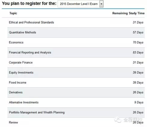 根據(jù)CFA Institute官方對2015年6月和12月CFA每個課題學(xué)習(xí)時間的建議: