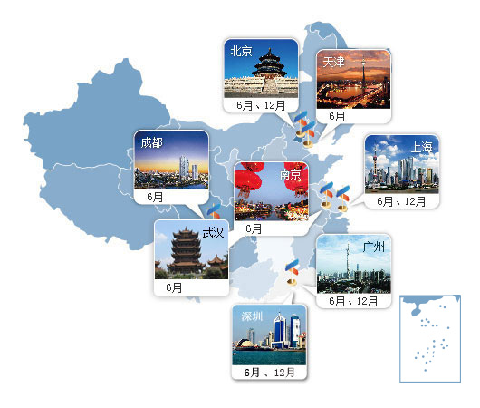 6月國(guó)內(nèi)大陸地區(qū)CFA考點(diǎn):北京、上海、廣州、南京、成都、天津、深圳、武漢(2015年6月新增)。