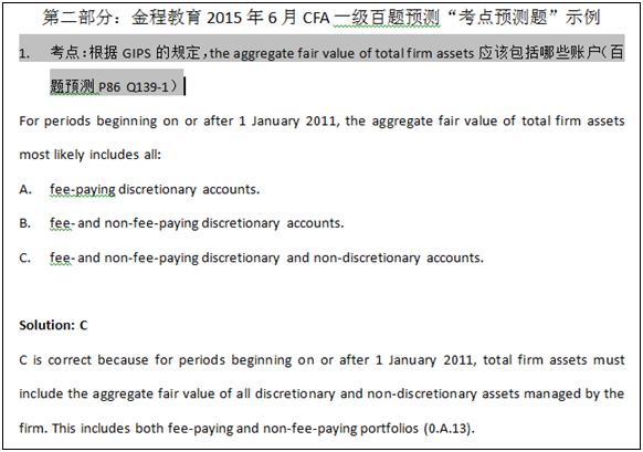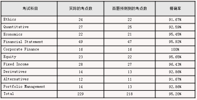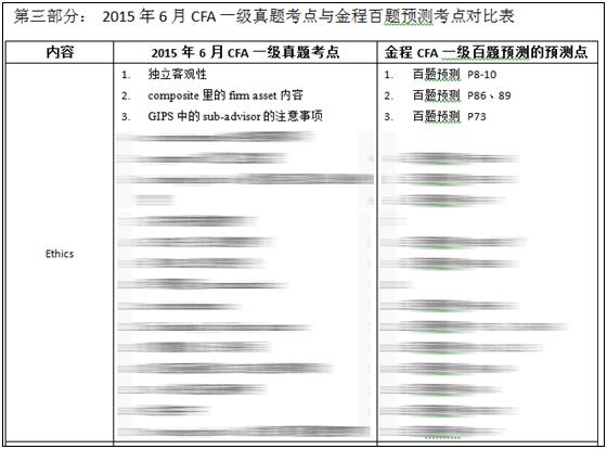 一、金程教育2015年6月CFA一級百題預測精確率統(tǒng)計表