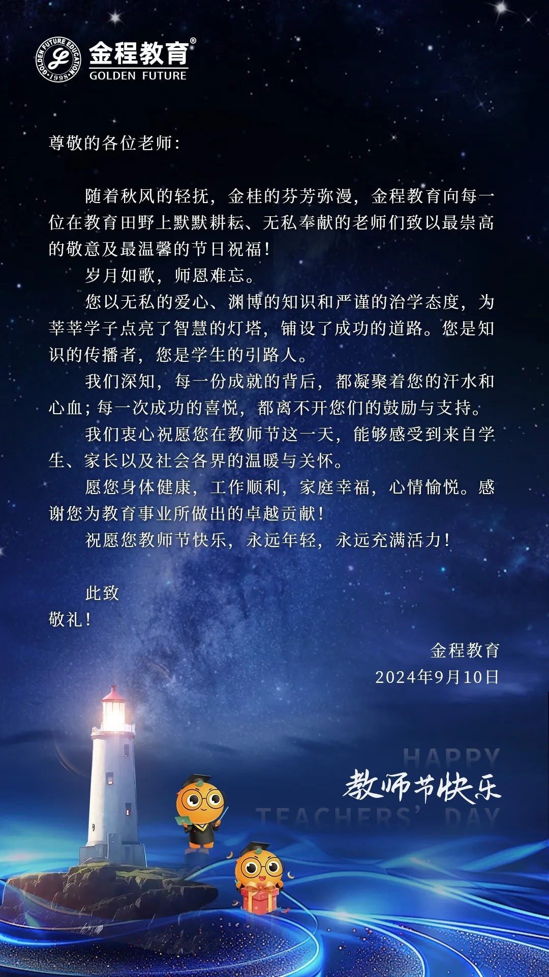 筆耕不輟育桃李,心血傾注譜華章 師道匠心育英才,學(xué)子揚(yáng)帆破浪行 師道匠心·智育未來(lái) 金程教育祝 全體老師們節(jié)日快樂(lè)??!