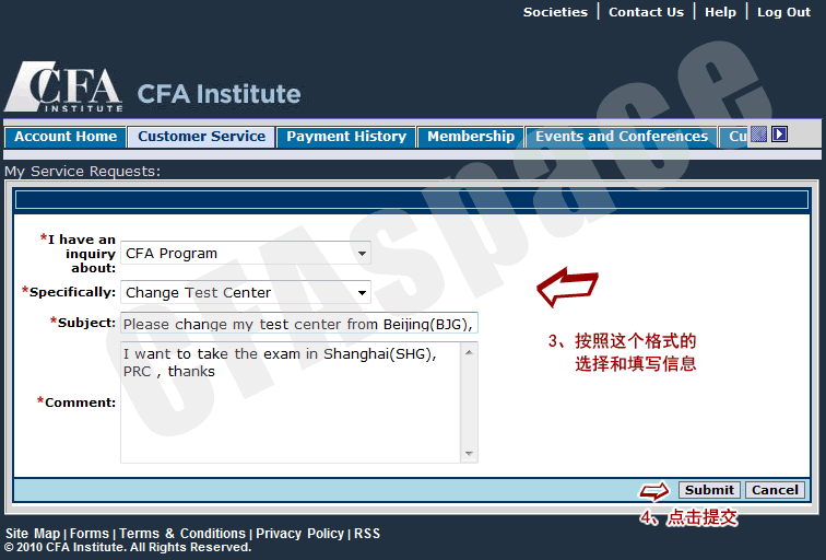 歷年很多考生會修改CFA考點,2015年12月CFA考試中還是有可能出現(xiàn)CFA考點更改情況。那么如何進行CFA考點修改呢?CFA考試地點變更申請步驟: