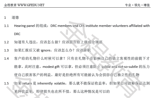 CFA一級的職業(yè)倫理被視作CFA考試的一個坎,占比達到15%!但對于土生土長的大陸考生,由于中西方文化的差異,對于協(xié)會的種種條款往往拿捏不準其真正的含義,導致失分!知您不易,我們?yōu)槟偨Y(jié):