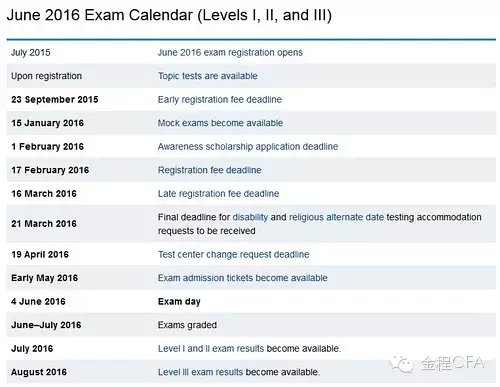 2016年6月CFA考試行事歷