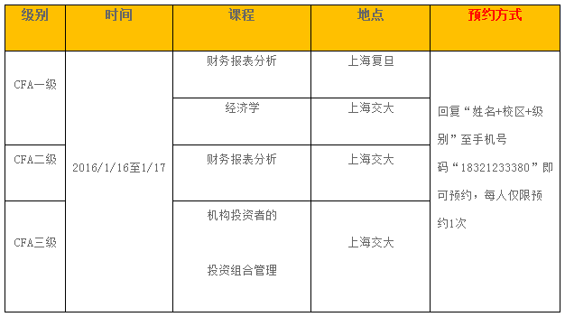 據(jù)相關(guān)調(diào)查數(shù)據(jù)調(diào)查顯示,大部分CFA失敗考生是因備考時間緊,考試重點難以把握等原因,準備不充分,缺乏考試信心,終考試失敗。為幫助考生切實掌握考試重難點,確保一次性順利通過考試,金程教育針對CFA一、二、級重點科目課程,開設(shè)免費CFA公開課,希望幫助更多考生減低考試通過難度,特別是CFA一二級的財務(wù)報表分析、數(shù)量分析課程,均是考試的重難點,機會難得,名額有限,預約趁早!