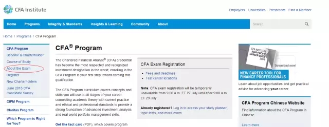 第三步:點擊 CFA Program (CFA課程)