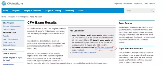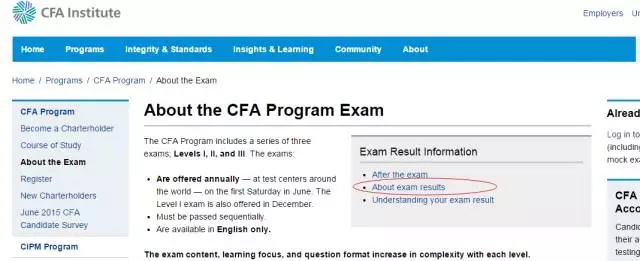 (5)CFA成績查詢可以在1月26日(或之后),您也可以在北京時間第二天的晚上通過官方在線系統(tǒng)進(jìn)行成績查詢。