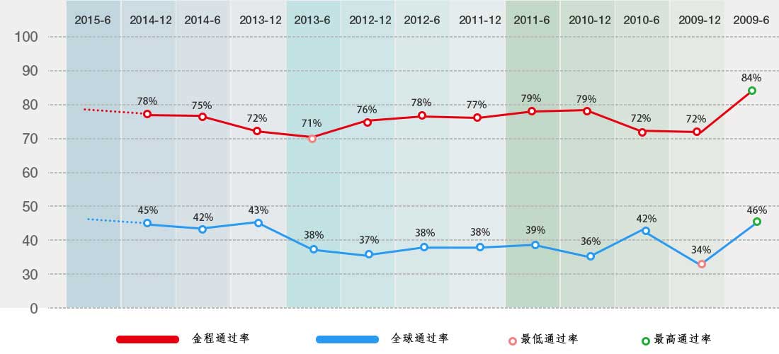 金程CFA歷年考試通過率一覽表:
