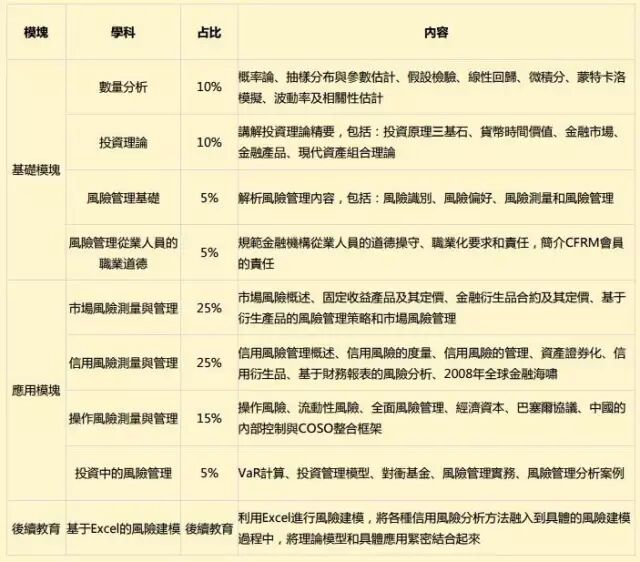 CFRM考試大綱(僅供參考)>>點我了解更多