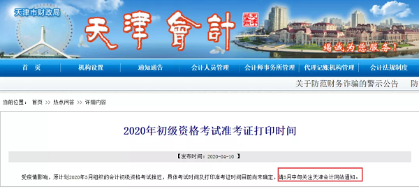 其中,天津市財政局就準(zhǔn)考證打印時間的回復(fù)隱隱透露出了2020年初級考試時間!一起來看下