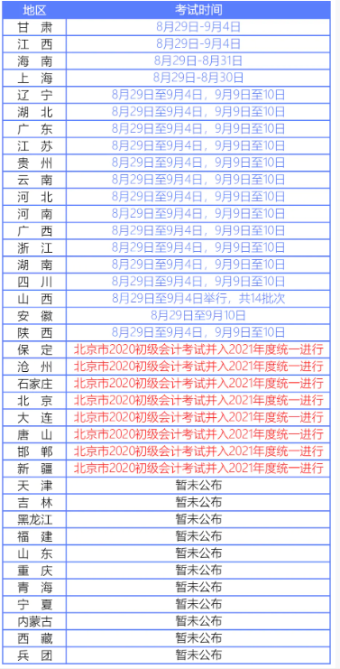 截止到目前,已經(jīng)取消2020年初級考試的地區(qū)有:北京、新疆、新疆兵團(tuán)、河北唐山、大連、河北邯鄲、河北石家莊、河北保定、河北滄州
