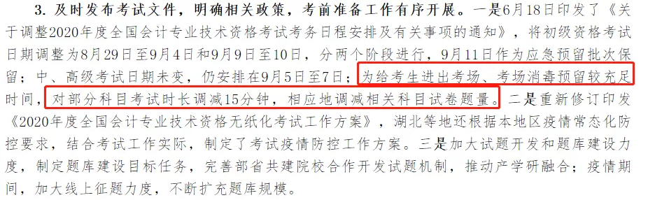 2020年為給考生進(jìn)出考場、考場消毒預(yù)留較充足時間,財政部對部分科目考試時長調(diào)減15分鐘,相應(yīng)地調(diào)減相關(guān)科目試卷題量(ps:是減少題量,不是難度)。