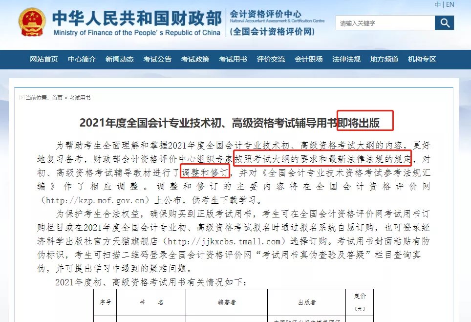 重磅消息!全國(guó)會(huì)計(jì)資格評(píng)價(jià)網(wǎng)剛剛公布:2021年初級(jí)會(huì)計(jì)考試教材即將出版!