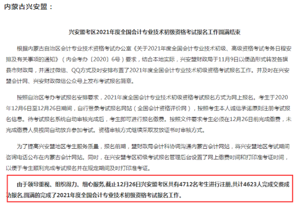內(nèi)蒙古興安盟2021年初級(jí)報(bào)考人數(shù)4623;去年的報(bào)考人數(shù)是5918,今年報(bào)名人數(shù)同比去年下降21.88%。