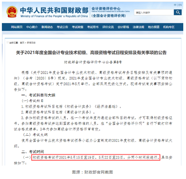 前段時(shí)間,財(cái)政部下發(fā)了《關(guān)于2021年度全國(guó)會(huì)計(jì)專業(yè)技術(shù)初級(jí)、高級(jí)資格考試日程安排及有關(guān)事項(xiàng)的公告》,其中公布了2021年初級(jí)會(huì)計(jì)考試時(shí)間為2021年5月15日至19日,5月22日至23日,和去年的2020年8月29日至9月4日,9月9日至10日相比,縮短了2天的考試時(shí)間。