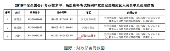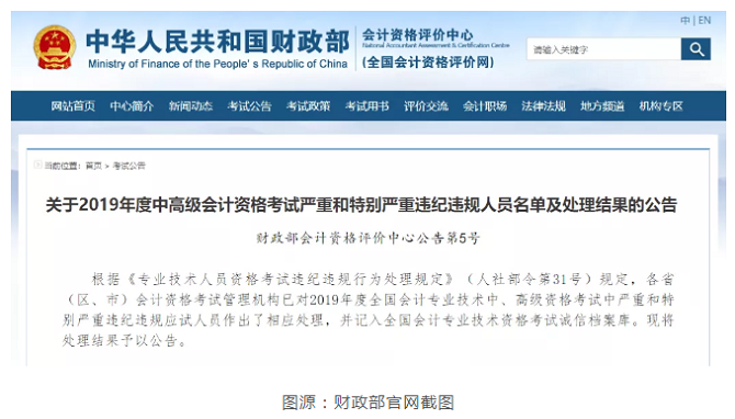 之前,在財政部發(fā)布的《關(guān)于2019年度中高級會計資格考試嚴(yán)重和特別嚴(yán)重違紀(jì)違規(guī)人員名單及處理結(jié)果的公告》中公布,2019年度全國會計專業(yè)技術(shù)中高級資格考試嚴(yán)重和特別嚴(yán)重違紀(jì)違規(guī)應(yīng)試人員中,嚴(yán)重違紀(jì)違規(guī)違規(guī)的共31人,特別嚴(yán)重違紀(jì)違規(guī)的共13人。