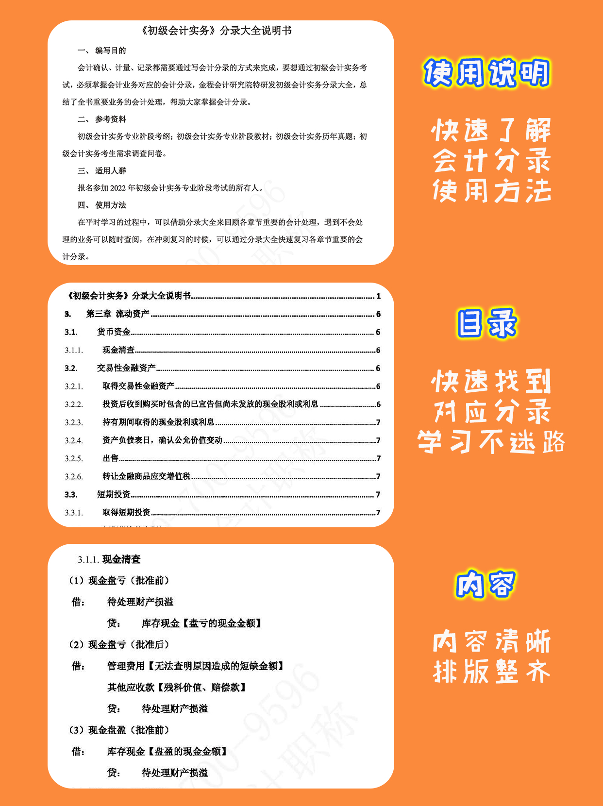 以上是金程會計小編為大家整理的新版的會計分錄大全(部分展示),按章、按2022年新考綱進行整理的,內(nèi)容全面、排版清晰,供大家學習參考,完整版共50頁,私信領(lǐng)取。
