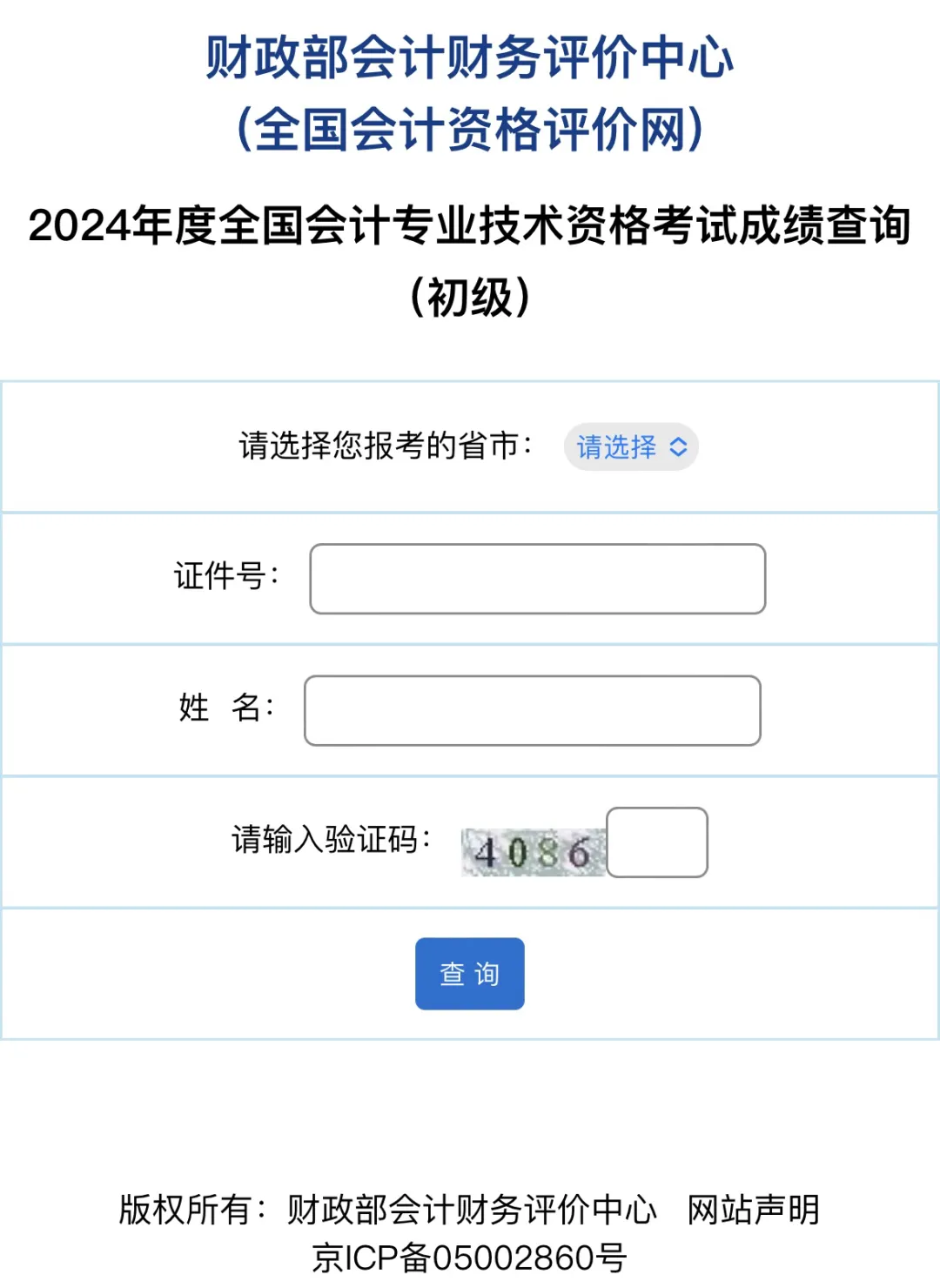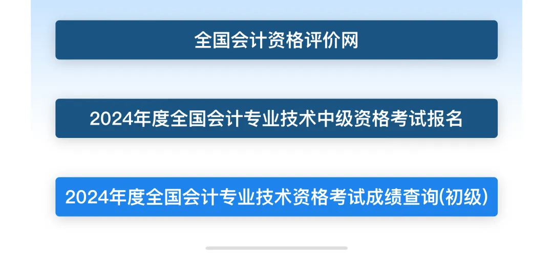 第一步:進(jìn)入“財政部會計資格評價中心”,選擇2024年成績查詢(初級)。