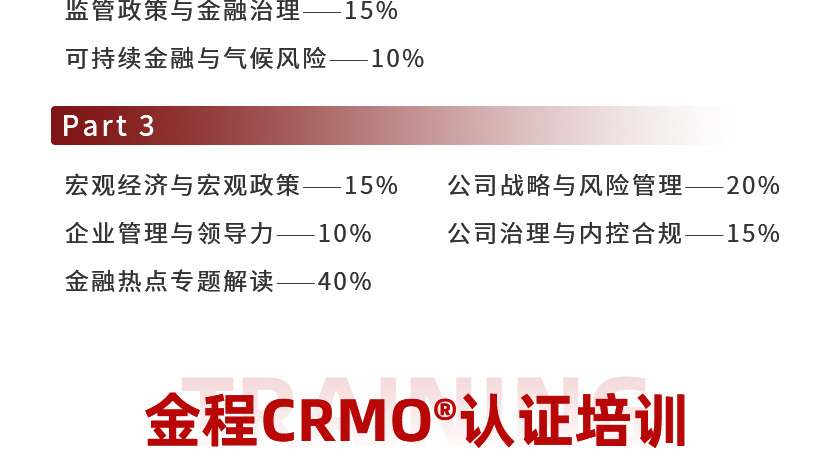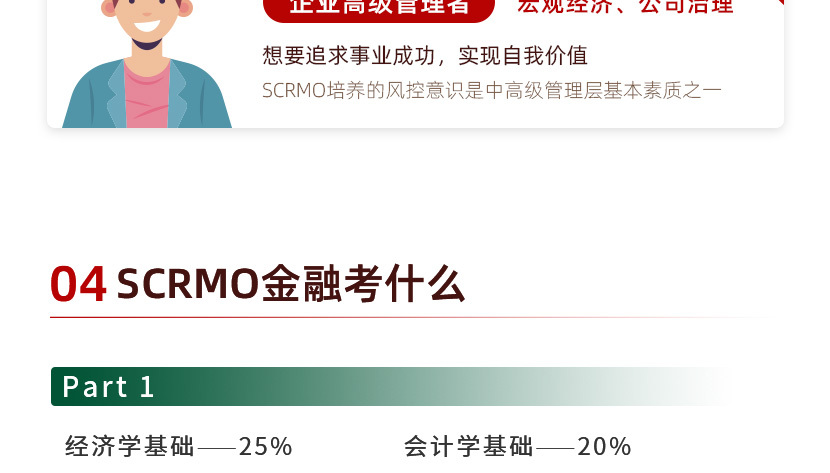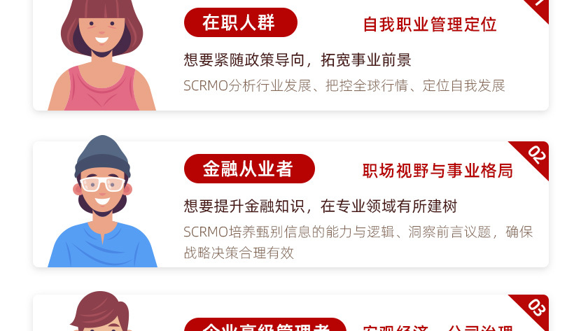 收藏 SCRMO面向?qū)I(yè)管理人員,培養(yǎng)全面風(fēng)險管理和合規(guī)體系構(gòu)建能力,提升治理水平與領(lǐng)導(dǎo)力,助力在政策改革、業(yè)務(wù)創(chuàng)新中發(fā)揮引領(lǐng)作用,為職業(yè)發(fā)展增添競爭力。