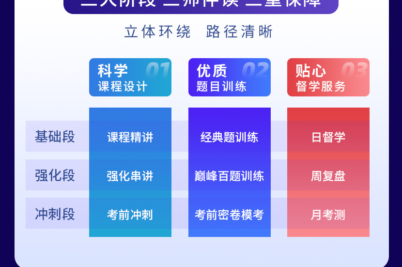 收藏 三大階段、三師伴讀、三重保障。清晰學(xué)習(xí)規(guī)劃,外加考試不過(guò)賠付課程培訓(xùn)費(fèi)和考試報(bào)名費(fèi)的硬核保障,讓備考更輕松。