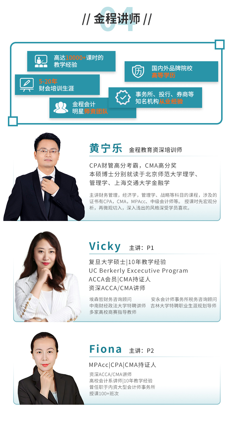 MPAcc|CPA|CMA持證人 高校會計系講師、資深A(yù)CCA/CMA講師 10年教學(xué)經(jīng)驗,授課100+班次 2019年CMA面授班通關(guān)率100%、2021年CMA面授班通關(guān)率100% 曾任職于內(nèi)資大型會計師事務(wù)所