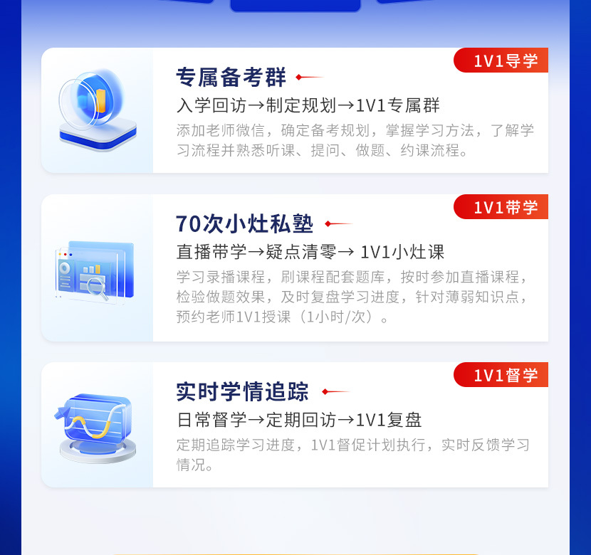1V1私教導(dǎo)學(xué),全程班班督學(xué),現(xiàn)金高分獎(jiǎng)金,免費(fèi)重讀保障,退費(fèi)協(xié)議保障