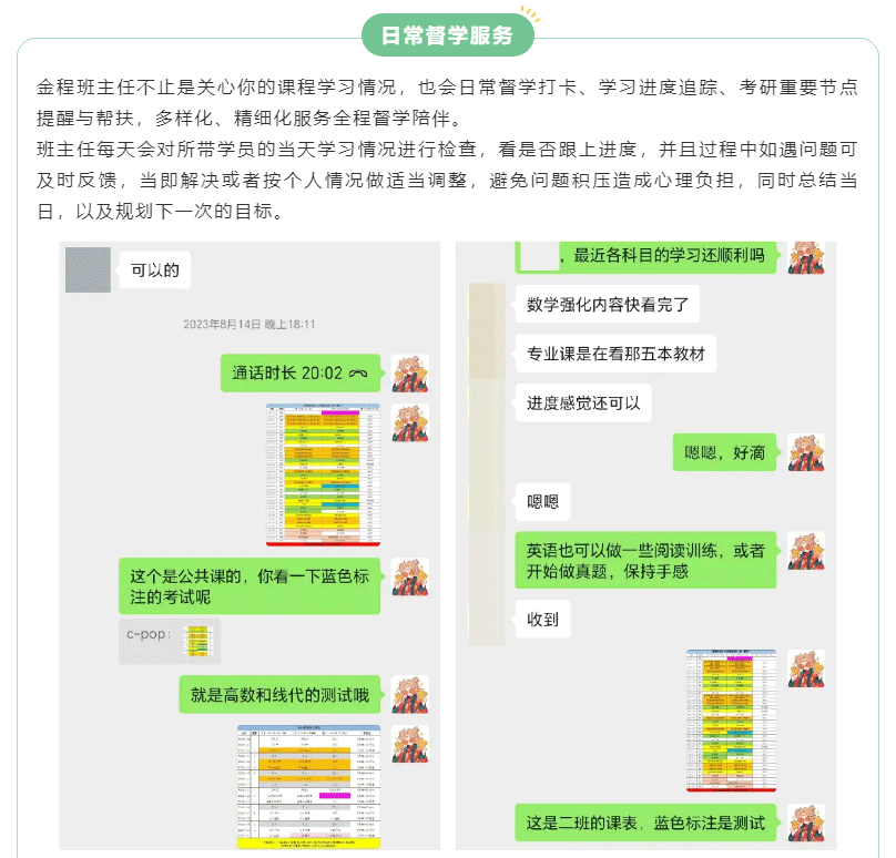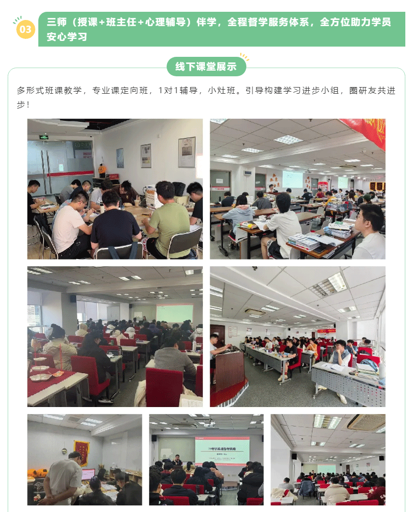 政治面授集訓(xùn)/在線課程+答疑服務(wù)指導(dǎo)+全程核心配套資料體系+系統(tǒng)測練講評動(dòng)態(tài)學(xué)習(xí)效果把控+班主任全程監(jiān)控督學(xué)。