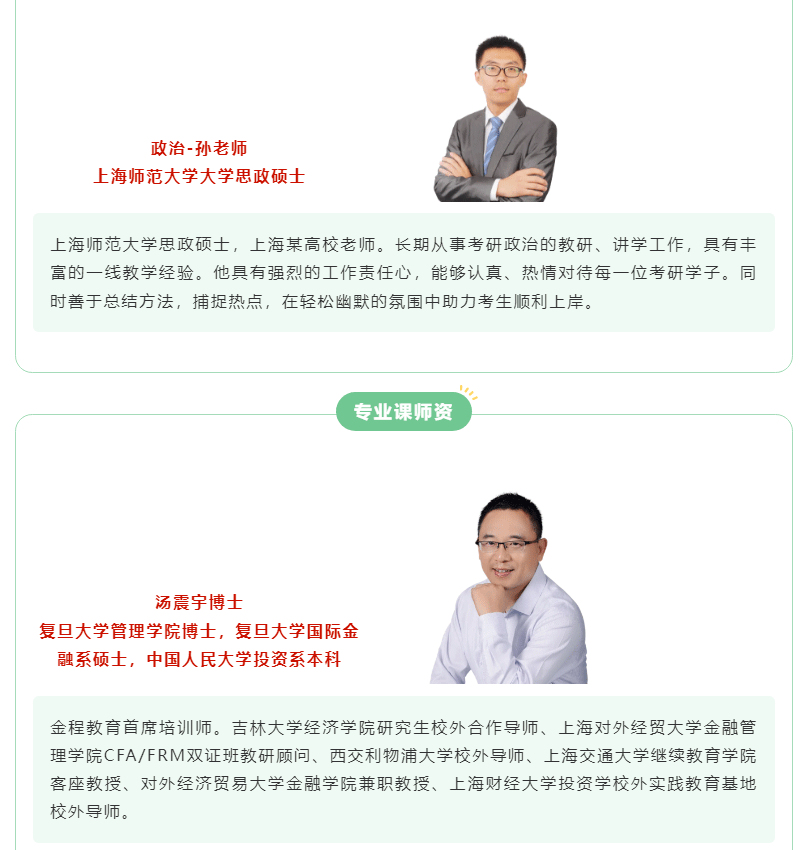 西北政法大學(xué)思政碩士,金程考研政治講師,6年考研政治教學(xué)經(jīng)驗(yàn)。擅長圍繞考研命題結(jié)合時(shí)事,實(shí)現(xiàn)考試得分最大化;教學(xué)風(fēng)格輕松幽默;參與《考研政治歷年真題匯編》圖書資料的編撰工作。