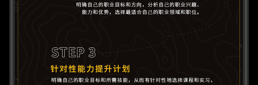 三個步驟幫您理清職業(yè)發(fā)展方向;三大課程模塊,帶您探索行業(yè)全貌,規(guī)劃未來職業(yè)航程。