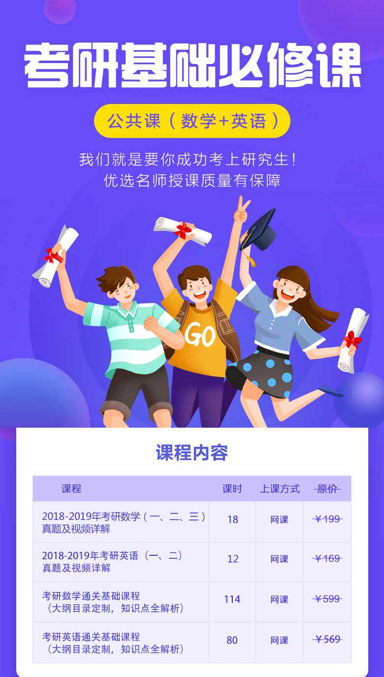 考研基礎必修課-公共課,我們就是要你成功考上研究生,優(yōu)選名師授課質量有保障。
