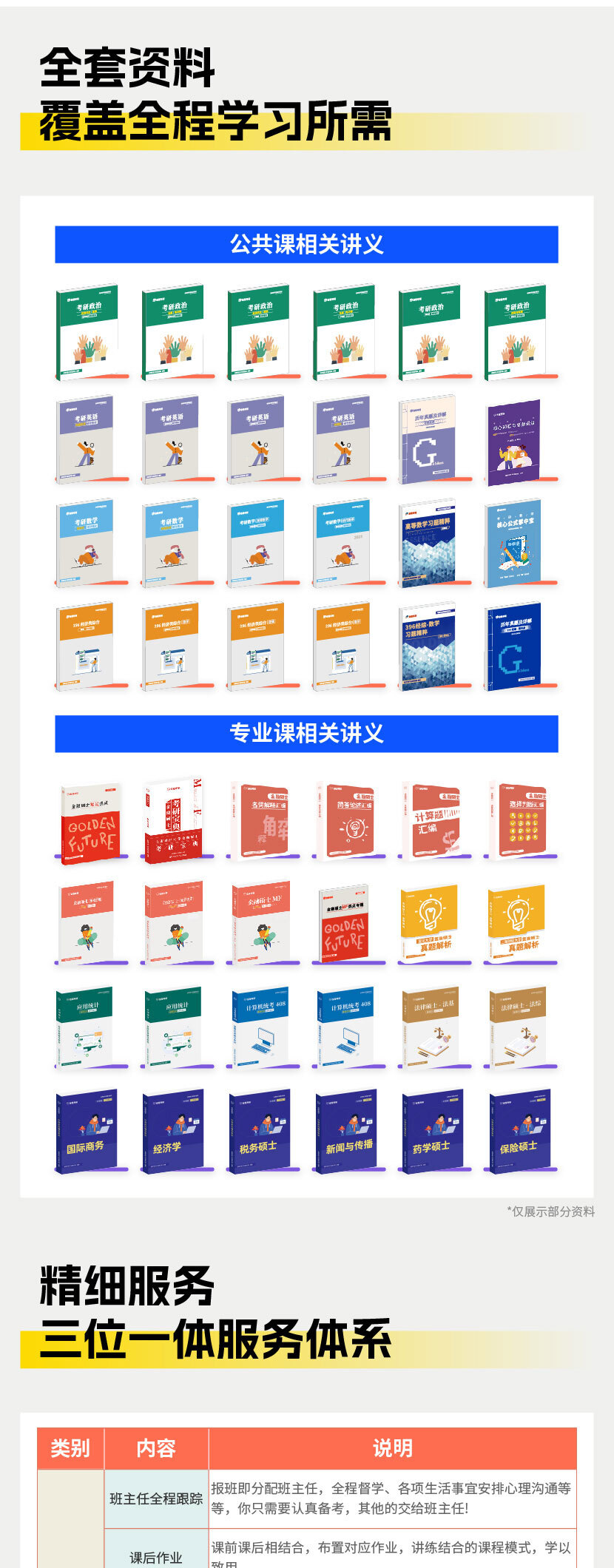 396經(jīng)綜面授集訓/在線課程+答疑服務指導+全程核心配套資料體系+系統(tǒng)測練講評動態(tài)學習效果把控+班主任全程監(jiān)控督學。