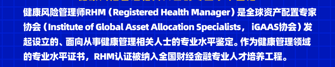 收藏 RHM是面向從事健康管理相關(guān)人士的專業(yè)水平鑒定。健康風(fēng)險(xiǎn)管理師認(rèn)證圍繞:個(gè)人健康管理概述、個(gè)人健康風(fēng)險(xiǎn)深度解析、個(gè)人健康管理的預(yù)防與規(guī)劃分析、個(gè)人健康管理實(shí)務(wù)操作解析等知識(shí)模塊,對(duì)當(dāng)今健康管理從業(yè)人員提出了全面的專業(yè)知識(shí)和實(shí)操技能保持一致的嚴(yán)格評(píng)價(jià)標(biāo)準(zhǔn)。