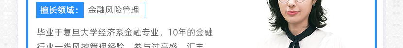 就職于美國安達(dá)保險集團(tuán),畢業(yè)于復(fù)旦大學(xué)經(jīng)濟(jì)系金融專業(yè),10年的金融行業(yè)一線風(fēng)控管理經(jīng)驗。