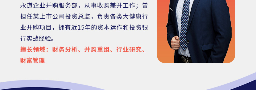 CFA、CPA、RFP持證、CFA ESG Investing ,曾就職于全球頂級咨詢公司與會計師事務(wù)所,擔(dān)任某世界500強投資總監(jiān)。