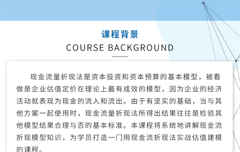 本課程通過實戰(zhàn)案例,手把手教您在實務中如何用excel構建DCL模型,對真實公司做估值。